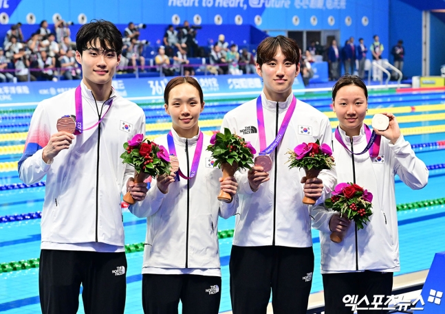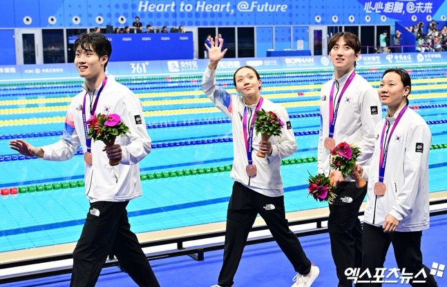 황선우는 자유형 200m 결승이 끝난 뒤 1시간 만에 혼성 혼계영 400m 결승에도 출전해 동메달을 추가했습니다. 한국 혼성 혼계영 팀은 3분 46초 78의 기록으로 3위에 올랐습니다. 황선우는 이번 아시안게임에서 자유형 200m 금메달 1개, 남자 단체 계영 800m 금메달 1개, 혼성 혼계영 400m 동메달 2개를 획득하며 한국 수영의 새로운 역사를 썼습니다.