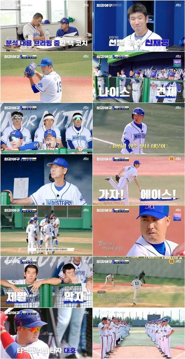 결국, 유희관이 이대은을 대신해 마운드에 올랐습니다. 최강 몬스터즈에게 다시 한번 콜드 게임 패의 위기가 다가오는 가운데, 유희관은 지난 시즌 에이스다운 완벽한 제구력으로 동국대 타자들을 막아냈고, 그 뒤를 이어 한 달 만에 등판한 투수조 조장 송승준이 7회까지 실점 없이 마무리했습니다.